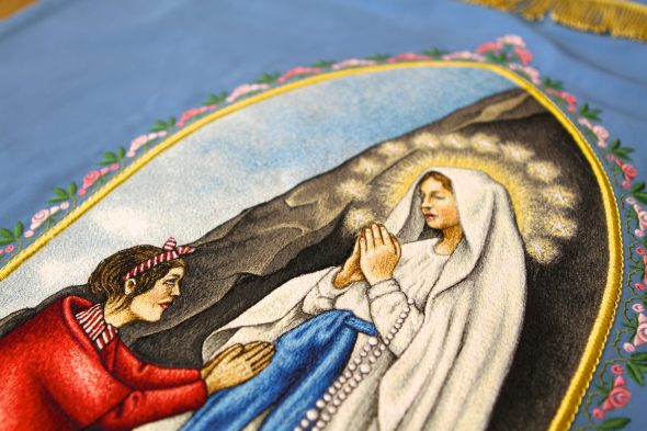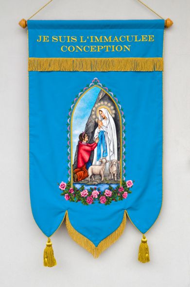 Wir entwerfen für Sie originelle Ausstattung Ihrer Kirchenfahne oder Banner. Wir garantieren hochqualitative Schneider-, Stickerei- und Malerbearbeitung. Alle Kirchenfahnen und Banner sind durch die Kunsthandstickerei von unseren Stickerinnen ergänzt.